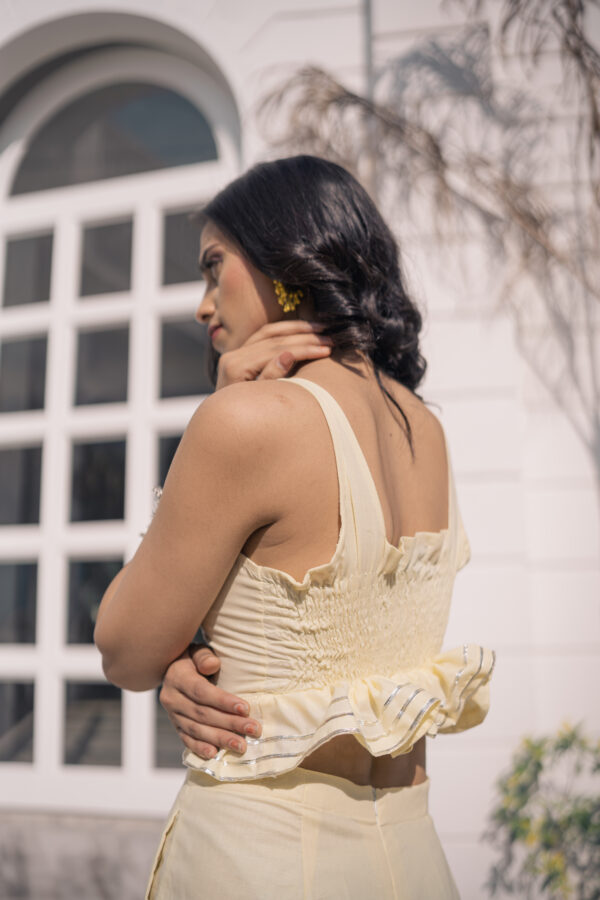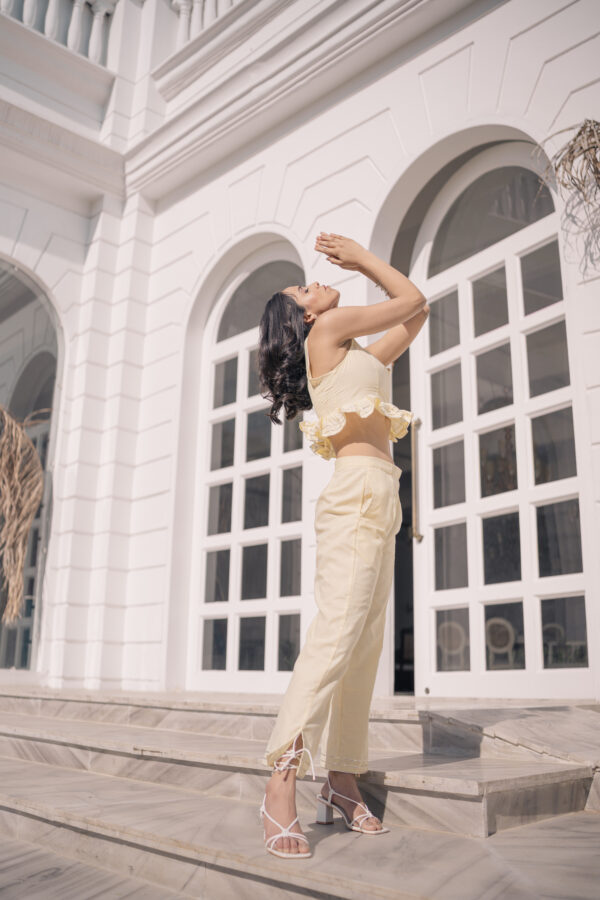 Get ready for summer with our Yellow Bliss citrus sensation co-ord set! The beautiful lemon-yellow fabric and intricate gota lace create a unique and stylish look, perfect for any occasion.